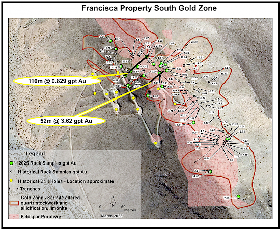 Orestone signed an Option Agreement covering the Francisca property during the first quarter of 2025. We are preparing to initiate a Phase I exploration program in the third quarter of 2025 with the advancement of various administrative and logistical tasks. The Phase I program will consist of detailed mapping and up to 600 rock and trench samples to better define the surface extent of widespread oxide gold-silver mineralization prior to drilling. Please click here for additional information.