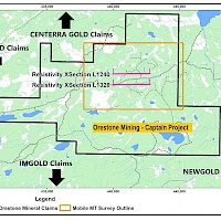 The MobileMT survey confirmed and better defined the large gold dominant porphyry T1 target that is the subject of ongoing exploration by the Company. The T1 target is one of three distinct low resistivity (high conductivity) zones within a prominent five kilometre long trend outlined on the Captain Project located near Fort St. James, North Central, British Columbia. The MobileMT survey was very successful in defining the outline of the low resistivity zone associated with the sulphide related gold-copper mineralization initially identified by Induced Polarization (IP) and magnetic geophysical surveys, and drilling from 2011-2021.