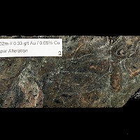 Further work will concentrate on the area to the west of the Northwest trending fault where previous drilling has identified gold-copper mineralization within potassic altered volcanic and intrusive units within a large, approximately 2km X 2km halo of phyllic alteration.