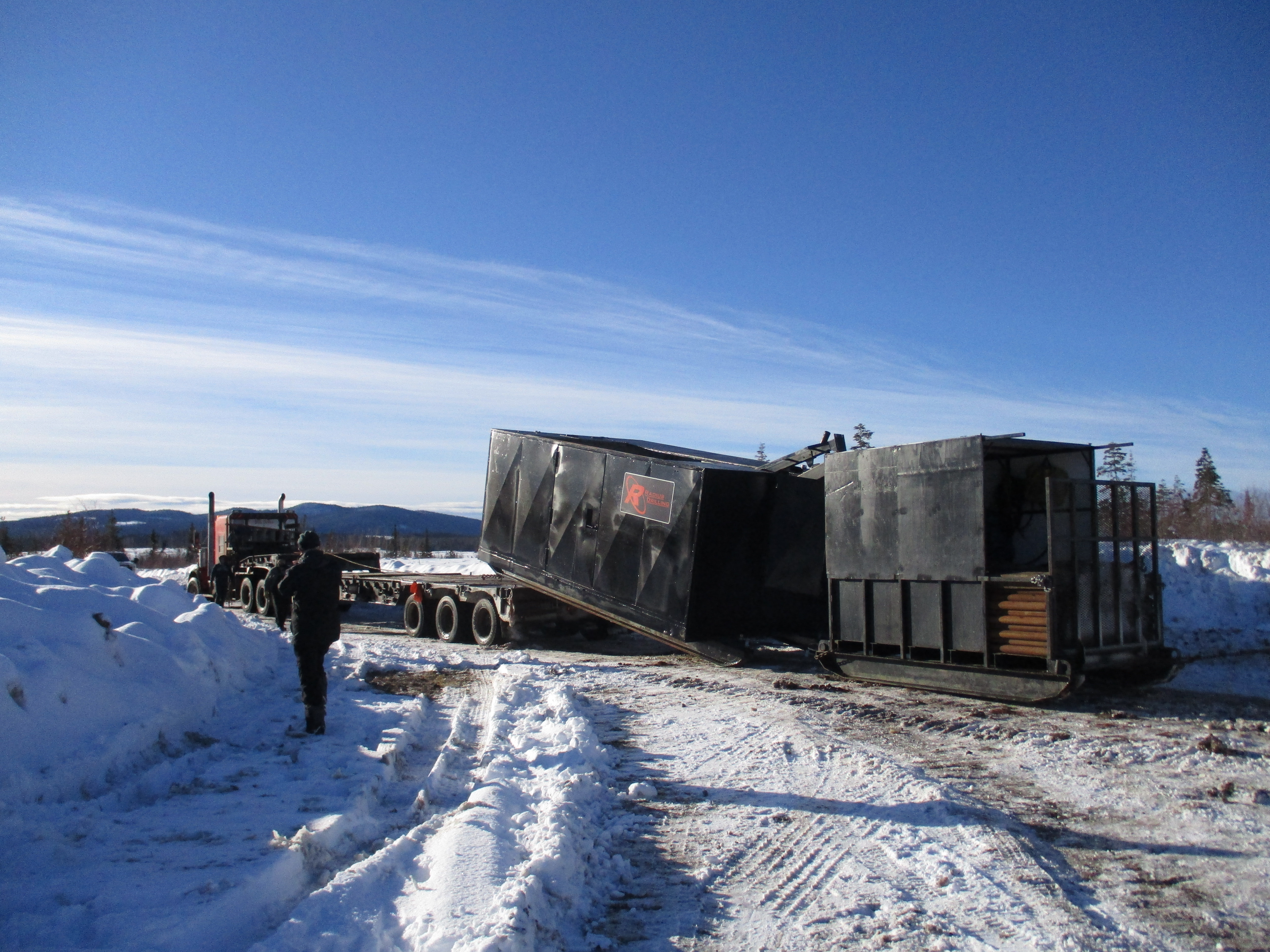The Captain Project area is covered by an extensive thick glacial till cover varying from 25 metres to 150 metres thick. Early work consisted of induced polarization and detailed magnetometer surveys which defined a NW trending central magnetic high flanked by smaller magnetic highs to the east and the west.